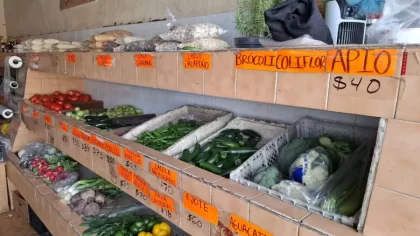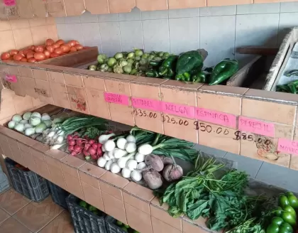 Frutas de temporada, verduras frescas, aguacate, jitomate, cebolla, papa, chiles serrano, jalapeño, habanero y morrón, brócoli, coliflor, ejote, hierbas frescas, huevo, semillas y granos a granel, botanas, galletas, dulces, refrescos, jugos, agua embotellada, productos refrigerados, yogurt, leche y abarrotes básicos.